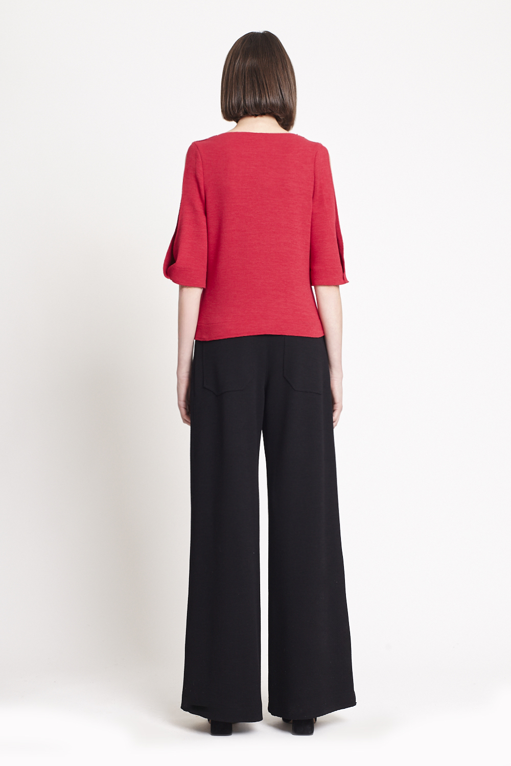 Blusa Bouclê Abertura Manga, FIT. Confeccionada em bouclê texturizado e encorpado. Possui modelagem reta e ligeiramente acinturada, decote arredondado alto, mangas 7/8 retas e estruturadas com recortes centrais alongados, acabamento pespontado clássico, barras à fio e comprimento regular.