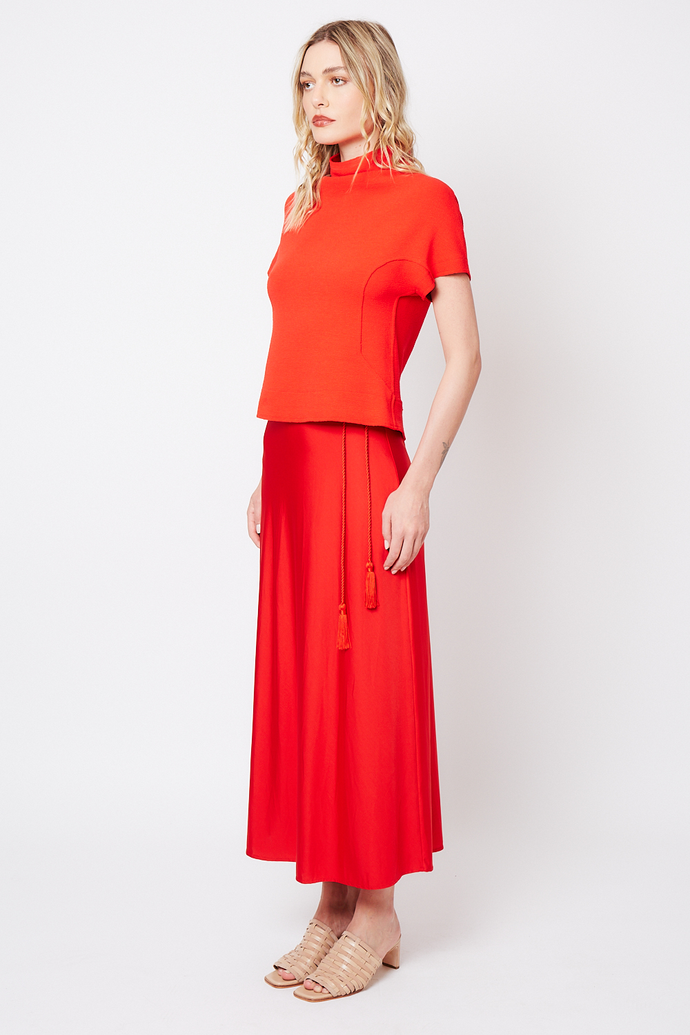 Blusa Bouclê Recortes, FIT. Confeccionada em bouclê texturizado. Possui modelagem reta e ligeiramente acinturada, gola alta ampla e arredondada, mangas curtas estruturadas, recortes laterais semi circulares, detalhes à fio, acabamento pespontado clássico, leve textura rugosa total e comprimento regular.