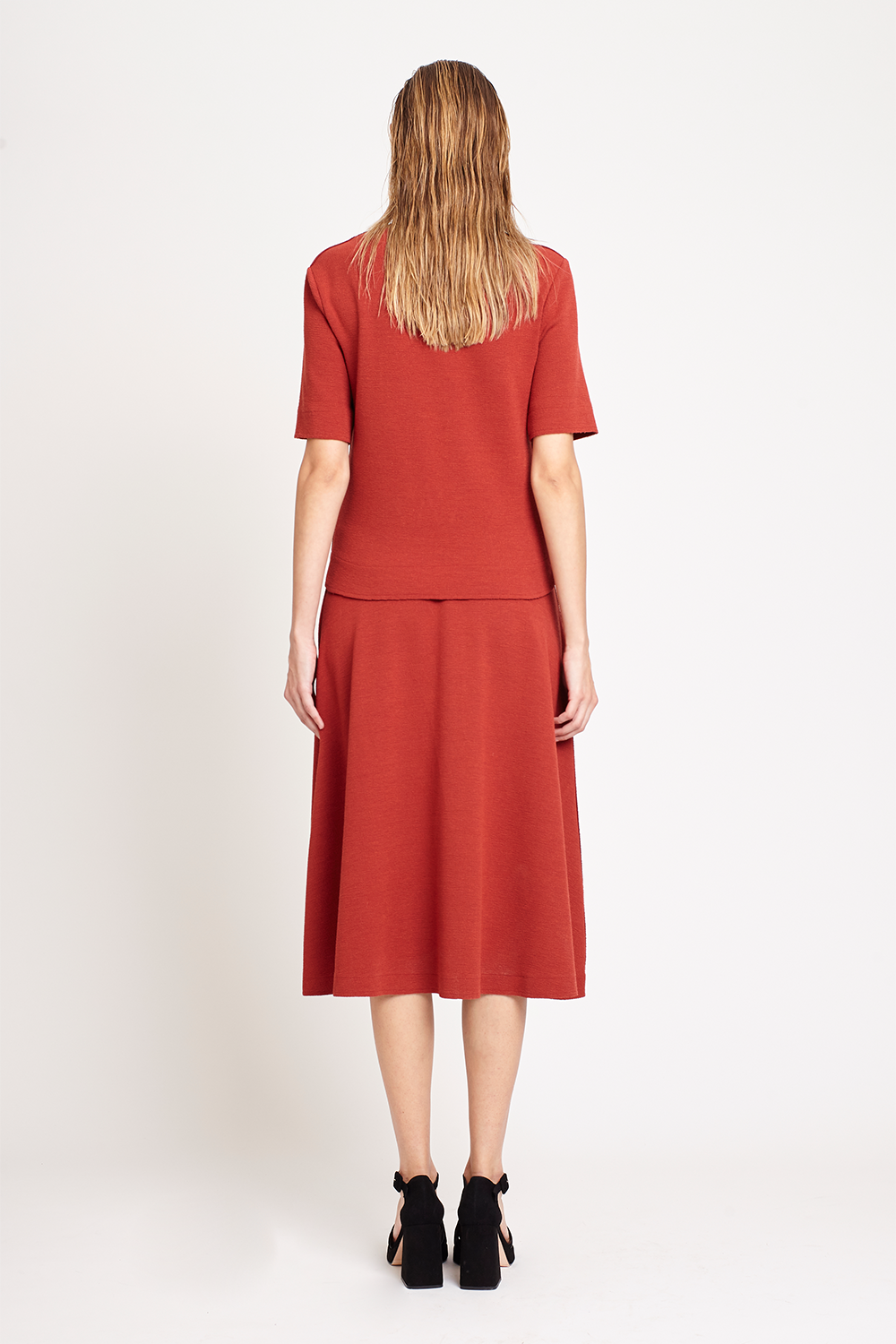 Blusa Bouclê, FIT. Confeccionada em bouclê texturizado e encorpado. Possui modelagem reta e ligeiramente acinturada, decote arredondado amplo, mangas curtas retas e de comprimento sutilmente alongado, pequenas fendas arredondadas laterais, leve textura rugosa total, acabamento pespontado clássico, detalhes à fio e comprimento regular.