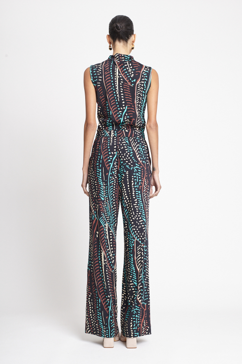 Blusa Jersey Estampa Penas, FIT. Confeccionada em jersey estampado. Possui modelagem reta, gola alta ajustada ao pescoço, drapeado frontal em sutis camadas estilo degagê, cavas laterais alongadas, estampa decorativa total com mix de cores, acabamento pespontado clássico e comprimento regular.