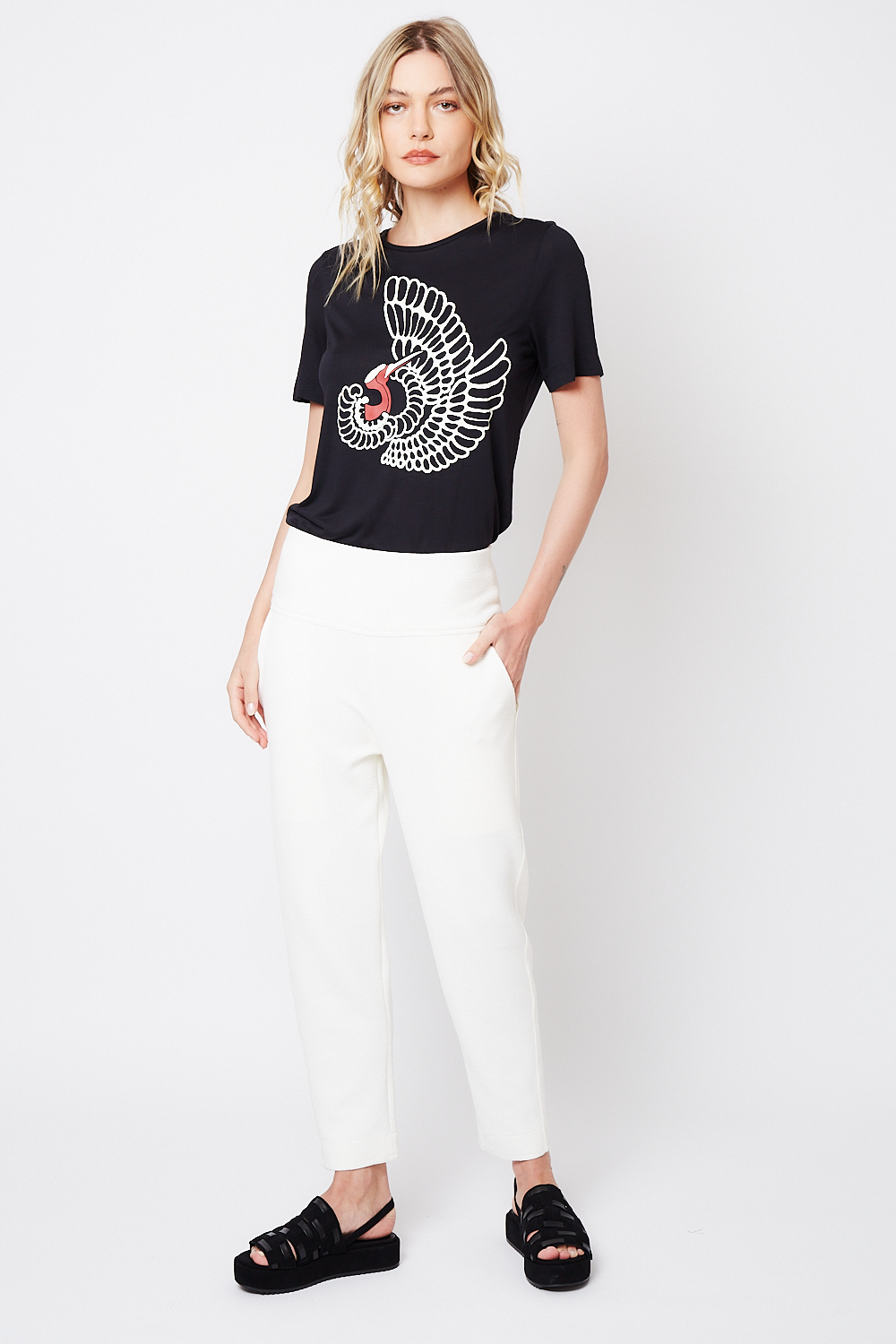 Calça Bouclê Cintura Alta, FIT. Confeccionada em malha encorpada. Possui modelagem reta e ajustada ao corpo estilo cenoura, cintura alta, cós reto e estruturado, dois bolsos laterais funcionais, dois bolsos posteriores, barras afuniladas e ajustadas, tramado mesclado total com sutil mix de cores, detalhes à fio, acabamento pespontado clássico e comprimento curto.