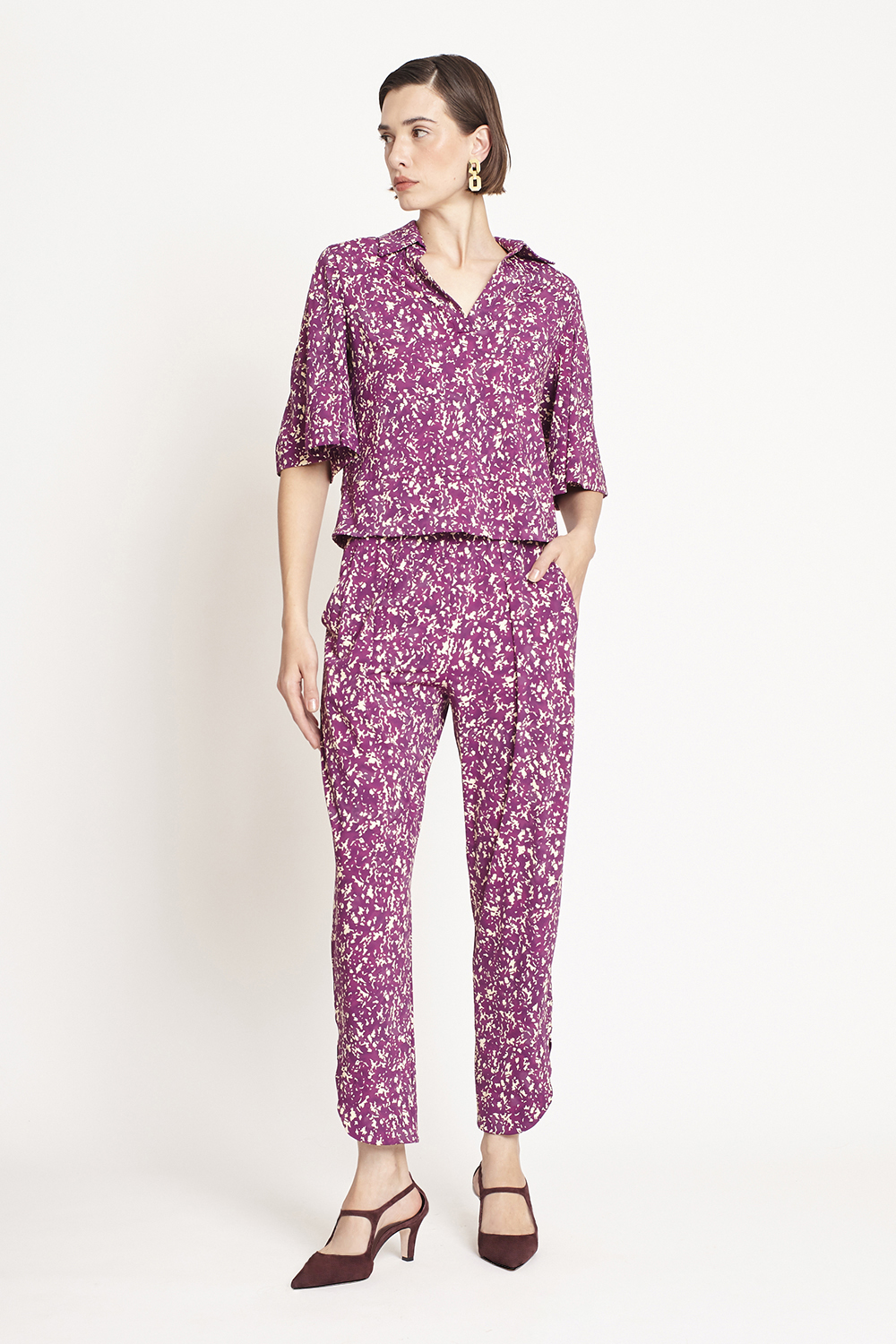 Calça Jersey Estampa Camuflagem Barra Arredondada, FIT. Confeccionada em jersey leve e fluido. Possui modelagem reta, cintura alta, cós com elasticidade para melhor ajuste ao corpo, pregas aparentes, dois bolsos laterais funcionais, estampa decorativa total com motivos abstratos, mix de cores contrastantes, fendas arredondadas inferiores, acabamento pespontado clássico e comprimento reduzido.
