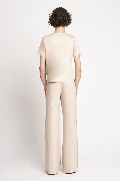 Calça Malha Dupla Leve, FIT. Confeccionada em encorpada. Possui modelagem reta e ampla estilo wide leg, cintura alta, cós reto e estruturado com sutil elasticidade para melhor ajuste ao corpo, dois bolsos laterais funcionais, recortes posteriores, barras amplas, acabamento pespontado clássico, detalhes à fio, barras amplas e comprimento alongado.