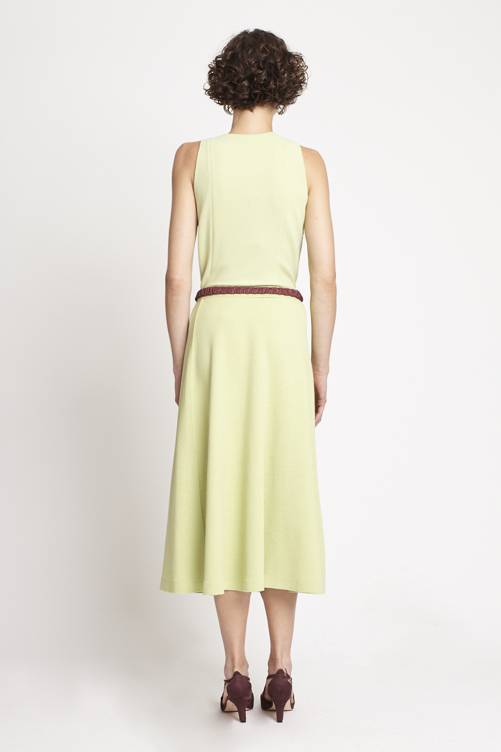 Saia Bouclê Com Bolso, FIT. Confeccionada em bouclê texturizado e encorpado. Possui modelagem reta, silhueta em 'A', cintura alta, cós reto, dois bolsos laterais funcionais, leve textura rugosa total, acabamento pespontado, detalhes à fio e comprimento midi.